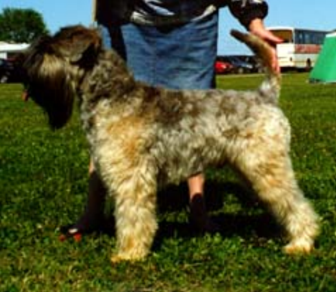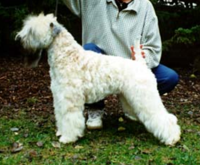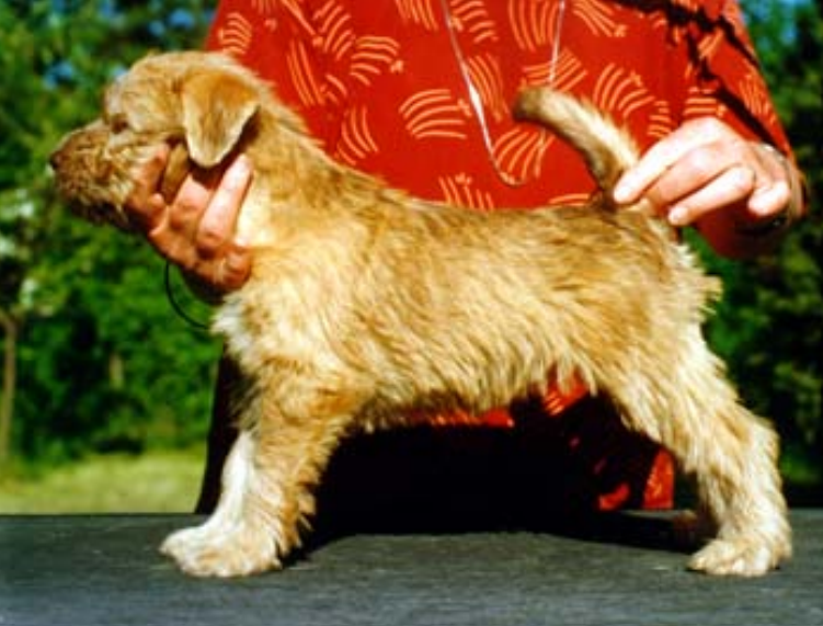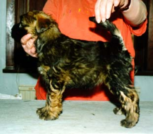 ”Graden av ljusnande varierar en del, och det verkar som om hundar med väldigt mycket svart i skägg, på öronen etc., ofta blir vitare än de hundar som istället har mer rött i pälsen och mindre svart. Denna tik är 18 månader och fick en bra om än ganska ljus vetefärg som vuxen. Samma grundformel som första valpen.”